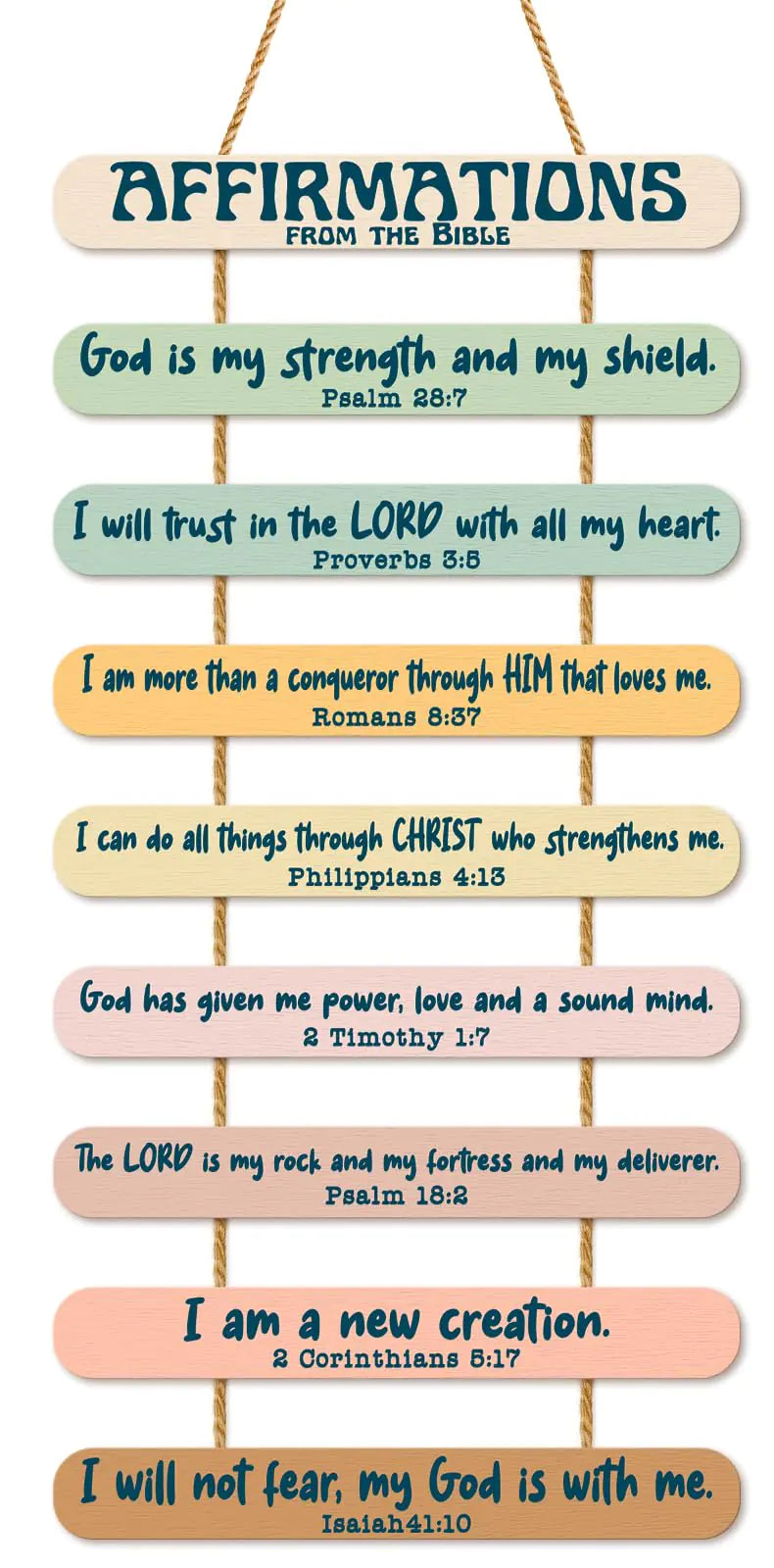 [Bible Affirmations Gifts for Christian Friends Christmas: Whether as a emotional cheerful support from Bible or encouragement Affirmations of Christian friends it’s a great bible gifts for Christian Friends encouraging gifts get well soon gifts for Christian women spiritual gifts for women catholic gifts her spiritual gifts for women thinking of you gifts for women encouragement gifts for women motivational Christian gifts for women faith. Perfect gifts for birthdays graduations farewell friendship or just to show Bible Affirmations for their well-being and Mental Health. "Encouragement Gift for Christian Women Birthday: This special Bible Affirmations wall decor sign serves as a popular inspirational Gift with Christian affirmations and belief in the power of Bible. Ideal Bible gifts for birthdays graduations friendship Mothers Day Valentines Day Christmas or other times when encouragement and Bible affirmation are needed." "Inspirational Christian Wall Decor Signs: with positive and Christian messages this Bible Affirmations gift is exclusively designed for Christian women who love to keep in touch with their faith. Whether it’s used as encouragement gifts for women Valentines gift for friends employee appreciation gifts and get-well-soon Christian gifts for womens faith thank you gift and even a retirement gift. It spreads courage and strength to the recipient let you feel comfort inspiring and the steadfast love and care of God in your lives." Motivational Bible Affirmations Gifts for Christian Women: You can give this Christian affirmations Gifts to women friendscollege girls coworkers sister bestie son and daughter which fits any desk providing Positive daily affirmations that boost morale and positivity transmits positive energy and inspiration. It’s an ideal decorative piece for Christian home office or bedroom providing daily motivation and positivity uplifting your space as a daily reminder of self-worth and positive affirmations. Bible Affirmations Wall Art Decor: These Bible Affirmations Hanging Wall Pediments are Made from good-quality wood and rope well packaged in a box. This mental health wall art decor includes 9 wooden plaques with flax ropes fixed together on the back. It fits any decor style and express encouragement and conveys the artistic touch. It is easy to hang on the wall with the whole size is about 29.7 inches and each wooden plaque 11.8 x 1.6 x 0.2 inches. Suitable for gift giving to women friends Teenage graduates colleagues and college girls etc. Give them positive energy and inspiration with this delicate emotional cheerful support gift.]