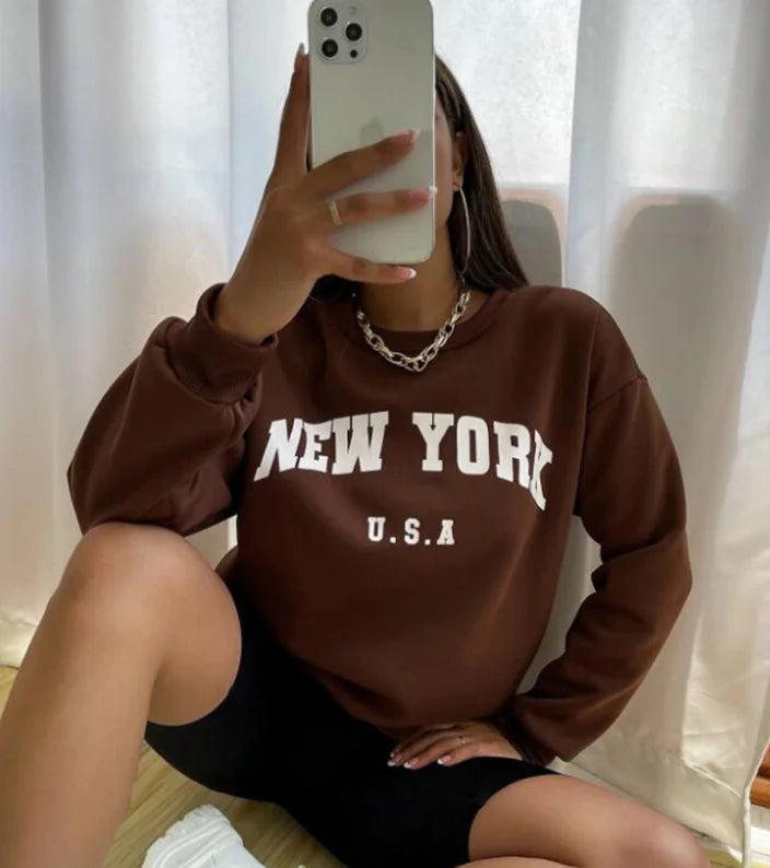 Loose Women's Sweater with Round Neck and Print Design